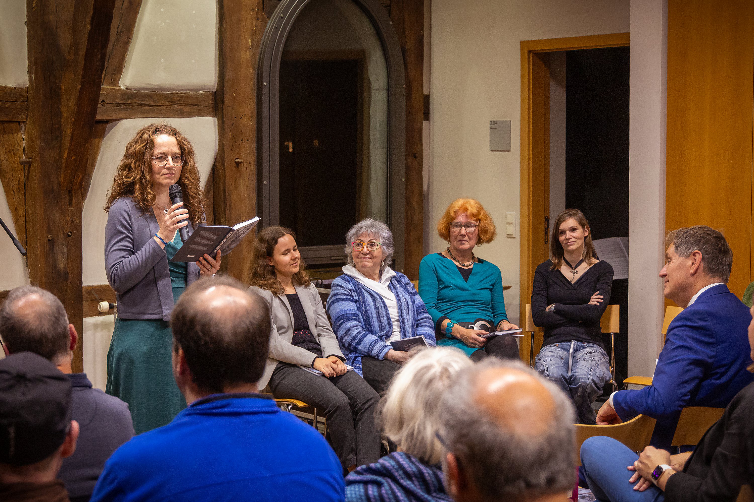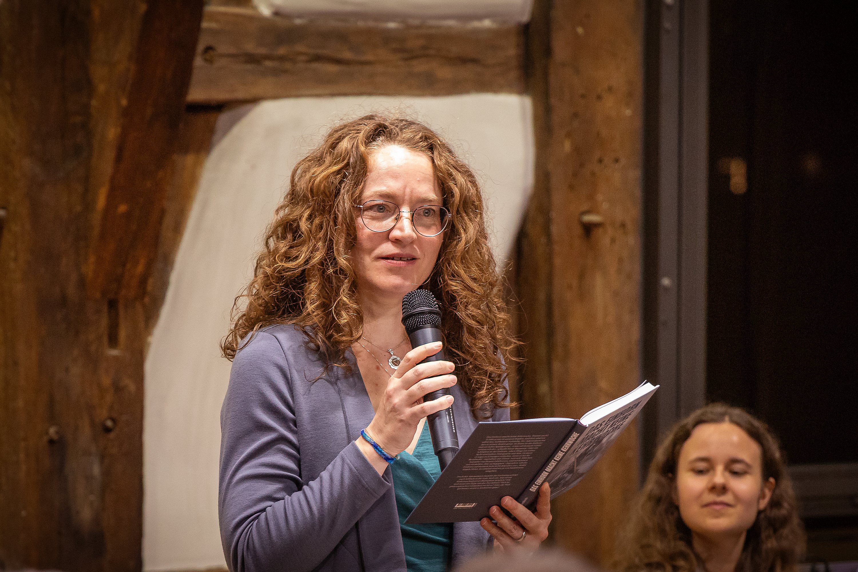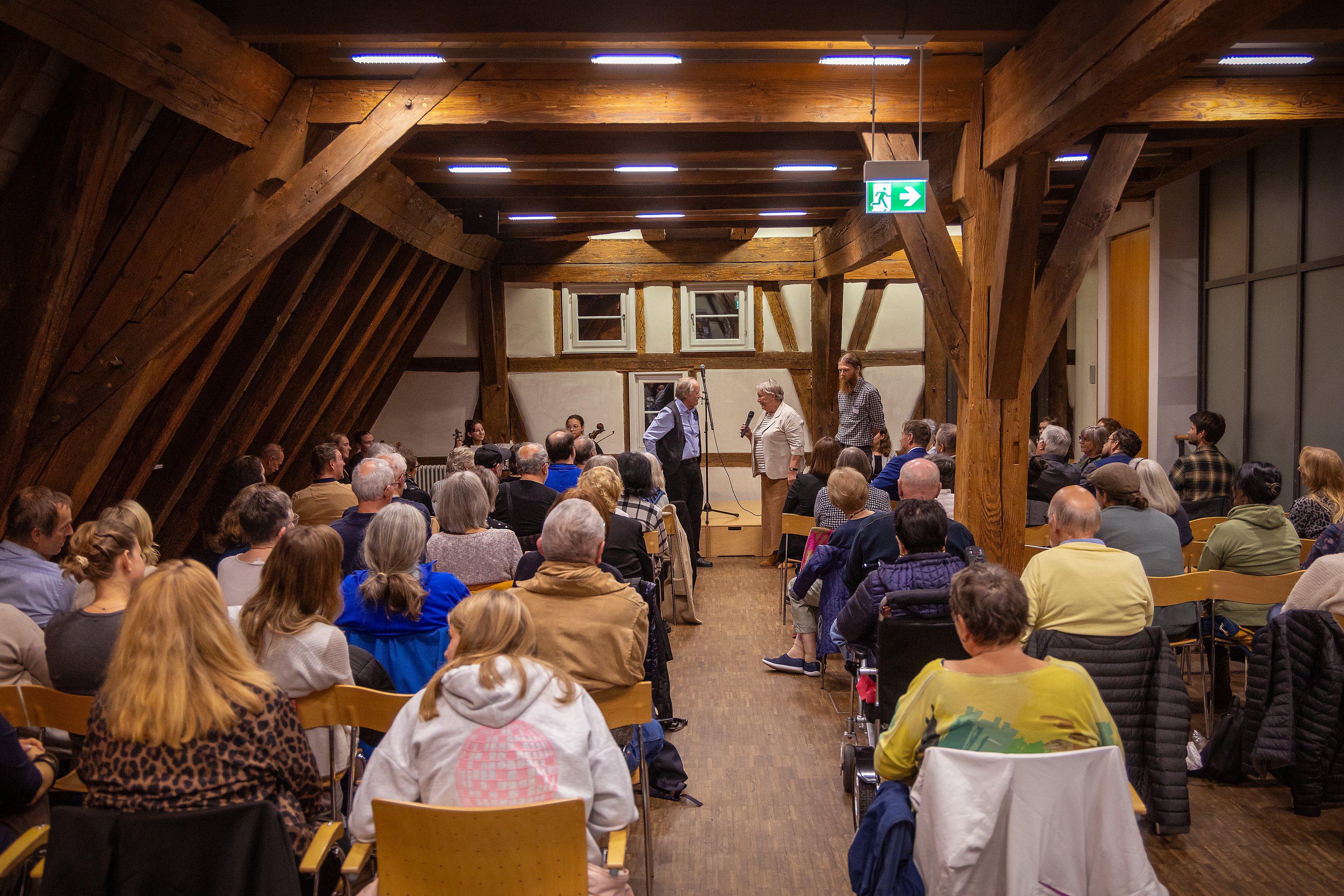 Mit dabei, einleitend sprechend, war natürlich Wilhelm Lienert, Koordinator des Autor:innenkreises und Herausgeber unseres Sammelbandes. Auf den Bildern seht ihr auch den schönen Raum in der Stadtbibliothek.